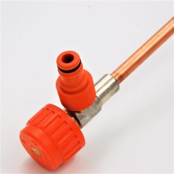 L’irrigateur de racines se branche facilement aux tuyaux d’arrosage (voir photo) une fois planté dans le sol.